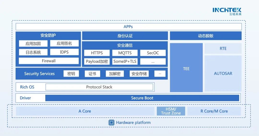 云馳未來提供信息安全技術框架(Cyber Security framework),包括整車級信息安全技術方案、零部件級信息安全技術方案、關鍵技術實施規范、軟件SDK。為智能網聯汽車提供統一網絡安全服務,提升網絡安全防護能力的同時,保障安全合規要求,為車型開發提供標準、可靠的安全技術支撐。