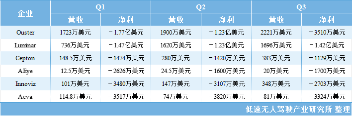 2023Q1-Q3國外激光雷達上市企業財報(據公開信息不完全統計)