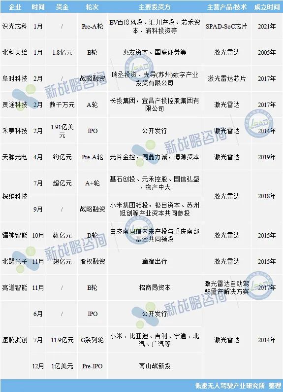 融資企業中既有激光雷達廠商,也有激光雷達關鍵零部件企業。部分企業更是一年內連續官宣多起融資,如探維科技、速騰聚創等。另外,繼2023年年初禾賽科技赴美上市后,圖達通、速騰聚創也公開了上市進展。