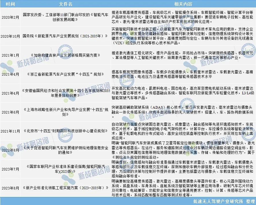 2020年~2023年國內部分支持激光雷達產業發展政策(據公開信息不完全統計)