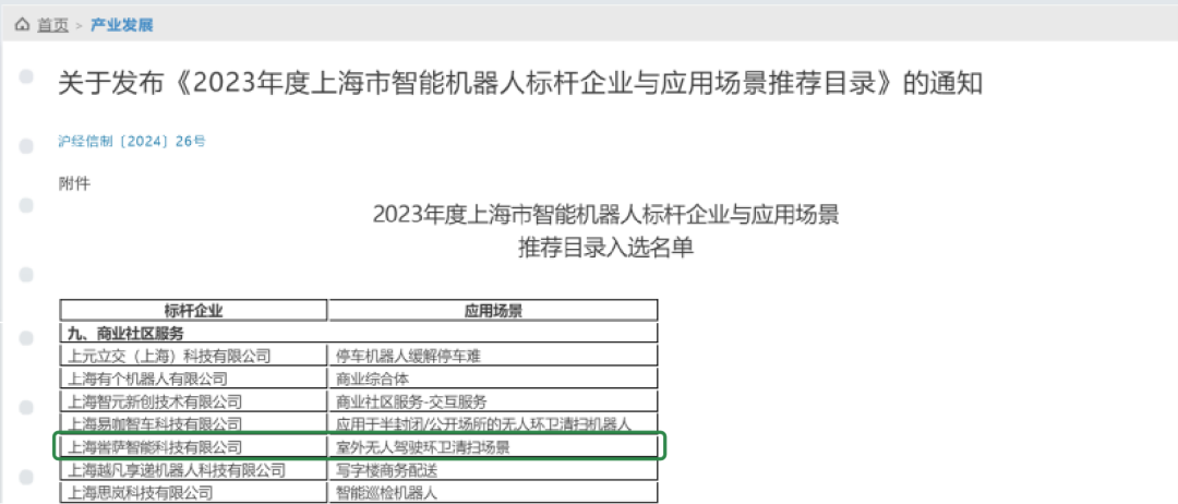 近日,上海市經濟和信息化委員會發布了《2023年度上海智能機器人標桿企業與應用場景推薦目錄》,經廣泛征集、各區推薦、評審擇優,青浦區4家企業入選,庫薩科技憑借“室外無人駕駛環衛清掃場景”躋身其中。