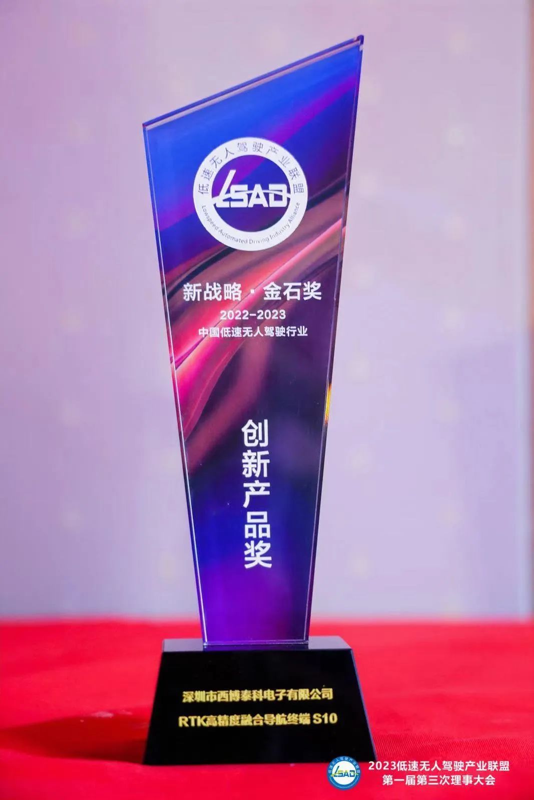 “新戰略·金石獎”評選活動由低速無人駕駛產業聯盟主辦,旨在樹立行業標桿,通過選樹一批典型,向全行業推廣低速無人駕駛創新技術、典型案例、成功經驗等,激勵企業以高質量創新,引領行業高質量發展。在“2022-2023 低速無人駕駛行業雙年度評選活動”中,西博泰科RTK高精度融合導航終端S10榮獲“創新產品獎”。