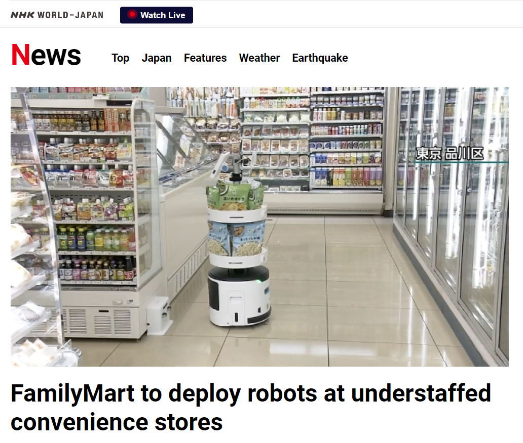 2月中旬,億嘉和無人清潔機器人落地應用也在海外市場取得初步進展。億嘉和清潔機器人落地日本連鎖店,據NHK報道,因工作人員短缺,日本連鎖便利店品牌FamilyMart將于2月底前在首批300家門店部署智能清潔機器人產品。其表示,機器人產品的引入,有望提高便利店運營效率。億嘉和首創“清潔+”產品理念,在完成日常清潔的同時,還能在便利店兼顧廣告推銷、活動播報、商品導覽等營銷功能。