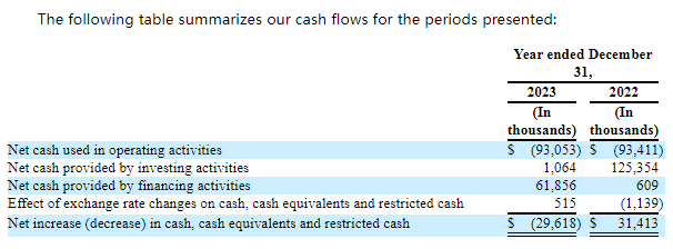 Innoviz 2023 年現金流增長情況(來源:美國證券交易委員會,單位以千計)