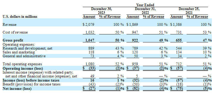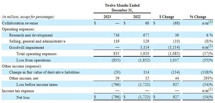 Aurora 2023 年經營業績報表(來源:美國證券交易委員會,單位以百萬計)
