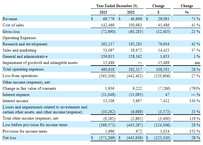 Luminar 2023 年經營業績報表(來源:美國證券交易委員會,單位以千計)