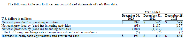 Mobileye 2023 年現金流增長情況(來源:美國證券交易委員會,單位以百萬計)