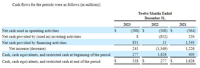 Aurora 2023 年現金流增長情況(來源:美國證券交易委員會,單位以百萬計)