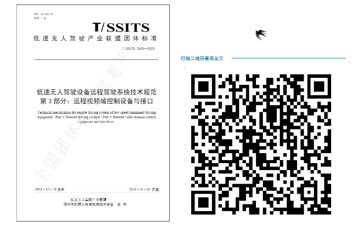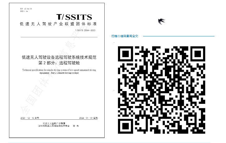 《低速無人駕駛設備遠程駕駛系統技術規范團體標準第1部分:總則》規定了低速無人駕駛設備遠程駕駛系統的術語和定義、系統架構、功能要求、安全行駛要求、數據及信道加密要求、開放道路視頻數據存儲安全性與合格性等。本文件適用于具備全流程自動化行駛和作業的低速無人駕駛設備。