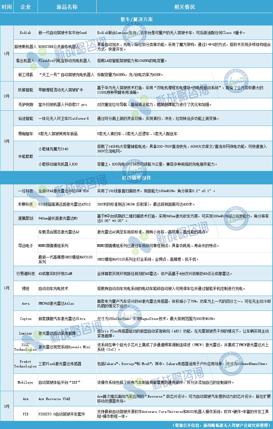 2024年一季度部分無人駕駛領域新品(未完善之處請指正)