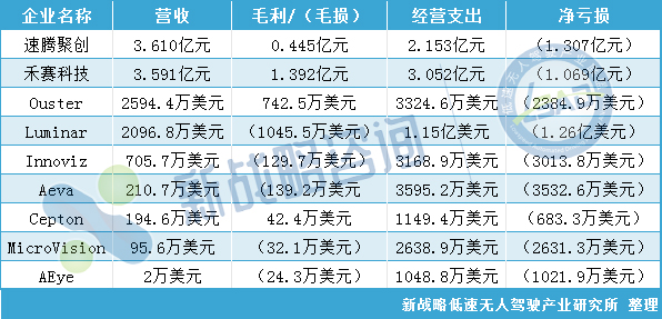 隨著速騰聚創、禾賽科技相繼公布 2024 年第一季度財報,全球 9 大自動駕駛圈上市激光雷達企業的一季度成績單均已揭曉。從公布數據來看,營收最高超 3.6 億元,凈虧損最高達 1.26 億美元。