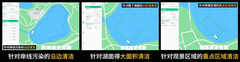 結合水域污染周期性和覆蓋位置,歐卡智舶團隊根據調研結果并結合客戶實際訴求,設定了三條清潔路線,分別為圍繞湖區沿邊清潔和兩個重點區域清潔。