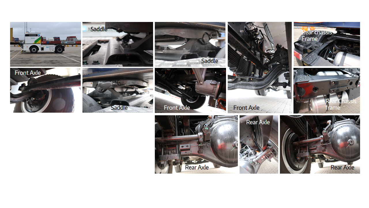 Q-Truck成功通過碼頭實際作業的底盤應變檢測,包括集裝箱重箱落箱測試。并且,在36種極限以及疲勞工況嚴格測試中,達到了安全運行目標。(注:安全系數均大于1.45,而行標一般僅需大于1.0-1.2。)