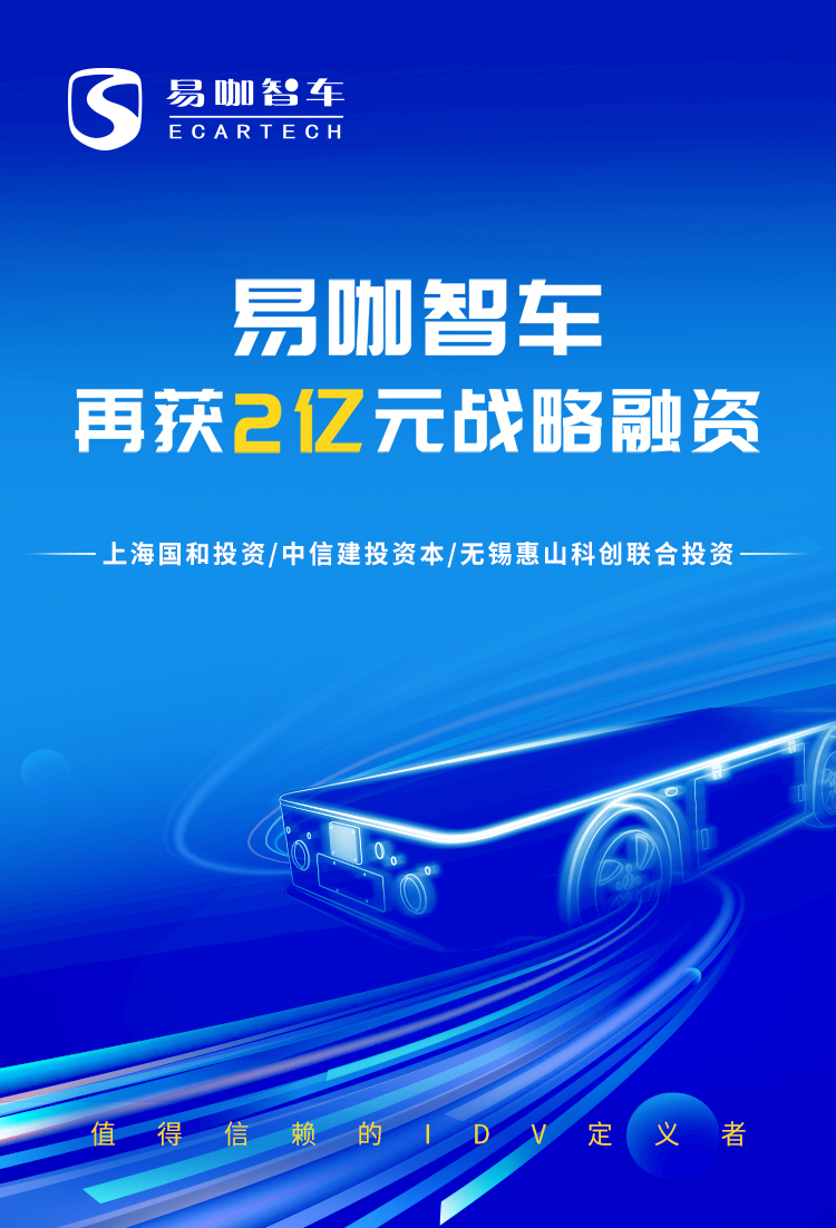 9月4日,易咖智車宣布獲得2億元戰略投資,本輪融資由上海國和投資、中信建投資本、無錫惠山科創聯合完成。據悉,本輪融資將用于智能工廠建設和產能擴容提升,以滿足行業爆發與客戶量產需求。