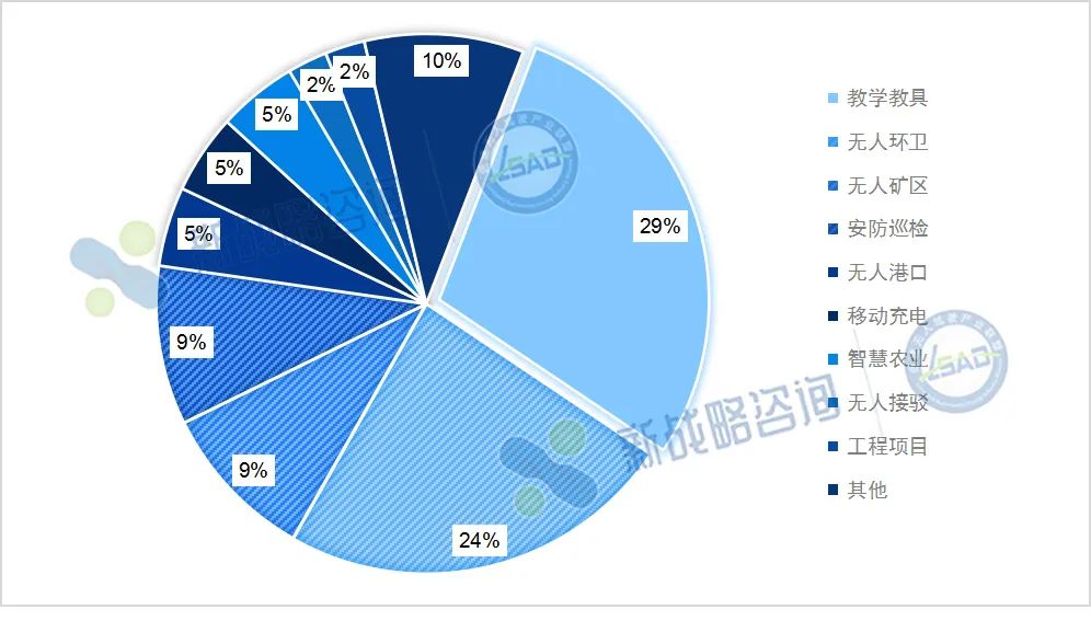 項目金額體量分布來,統計的中標項目以數十萬級居多,占比33%,且大部分是教學系統和教學實驗車采購、無人環衛車租賃項目。其次是數百萬級的項目,占比29%,集中在礦區、港口等領域。