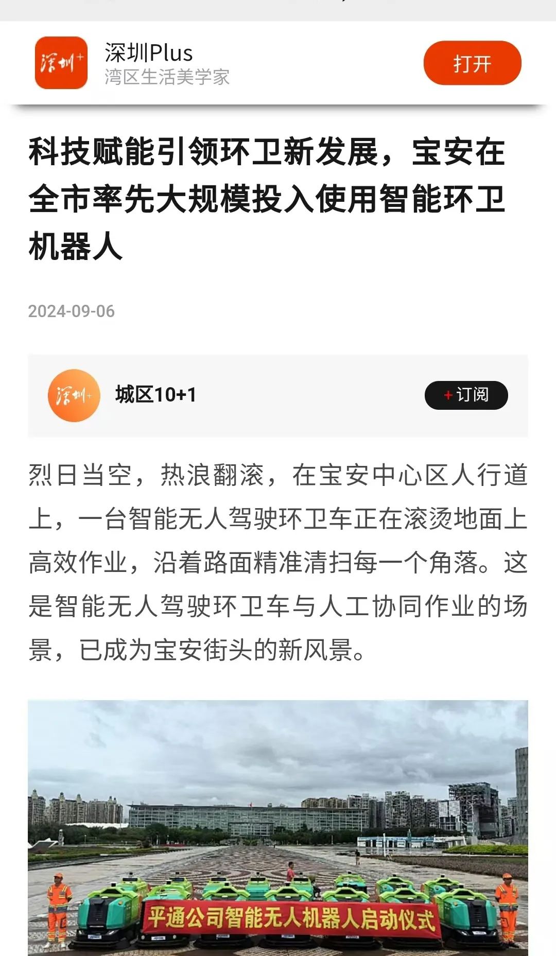 寶安交通集團平通公司在城市基礎設施管理與服務領域深耕多年,在清掃保潔、綠化管養、市容巡查等方面保持著良好業績,此次合作不僅體現了平通公司在智慧城市管理與建設上的前瞻性,更是其在民生保障方面主動擁抱變革,為深圳的環衛產業注入新質生產力的堅實舉措。