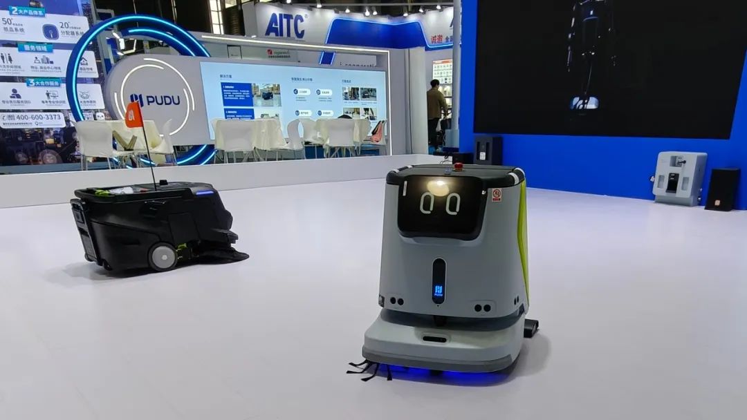 普渡科技重點展出兩款商用清潔機器人PUDU CC1和PUDU MT1。