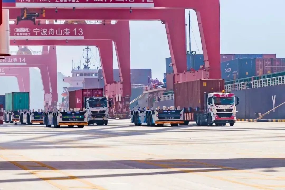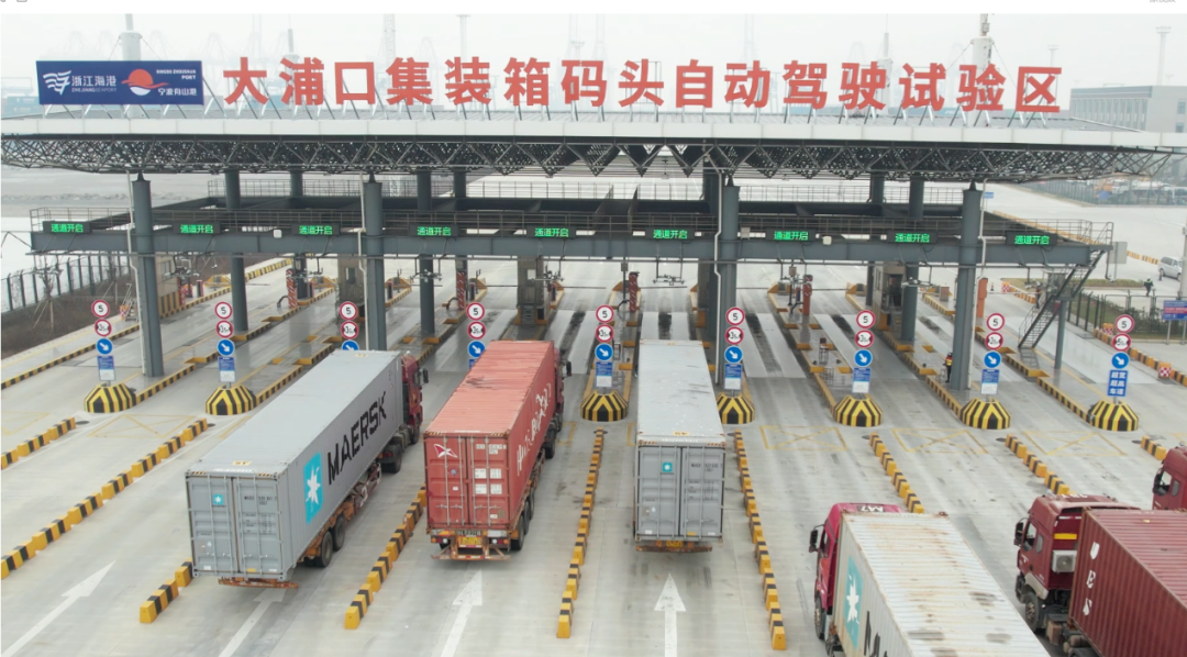 2024年1月9日,寧波舟山港開放金塘港區大浦口集裝箱碼頭自動駕駛試驗區,2024年中,該碼頭達成無人集卡全域自動化作業目標。其中,飛步科技于2023年在此落地首期12臺智能引導運輸車(IGV)并提供集裝箱運力服務,后又中標甬舟碼頭45輛無人集卡項目。
