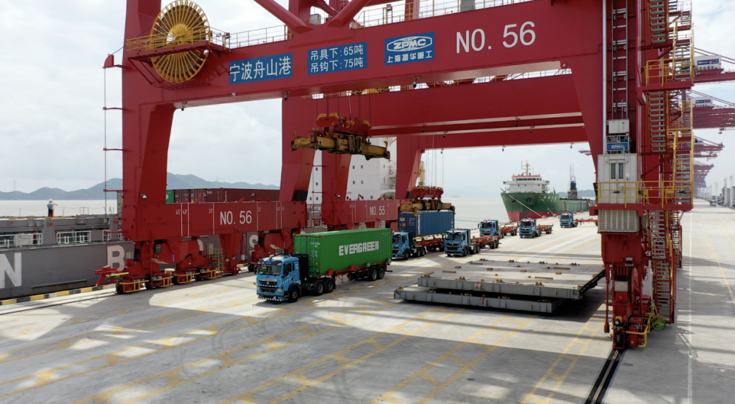 振華重工深度參與洋山四期工程建設,首批提供了包括26臺自動化岸橋、119臺自動化軌道吊以及135臺自動導引運輸車(AGV)在內的全部港機設備和設備管理控制系統(ECS)。