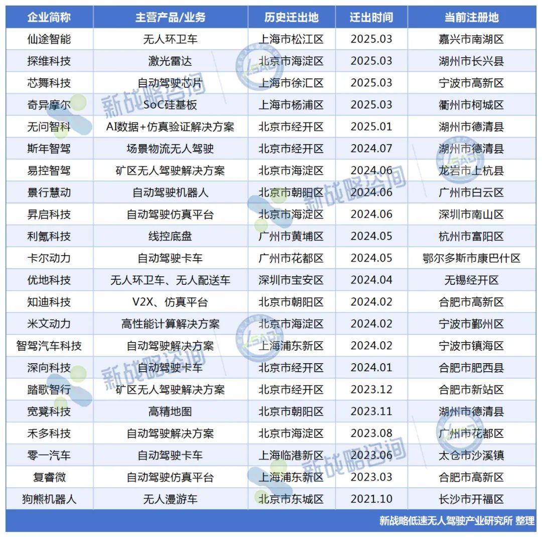 2021年以來本部遷離“北上廣”的自動駕駛公司(遷出時間為工商信息變更時間,未完善之處請指正)