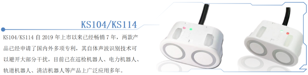 KS114還衍生出了多款針對特殊環境的高性能產品,如KS114N,在零下40℃的極寒低溫環境也可以正常工作;KS114NE,可以抗電磁干擾,其允許臨近電機布置而不被干擾,而其自體聲波識別技術則可以避開大部分同頻干擾。這些性能優勢,有利于巡檢機器人在變電站、配電房等場所保持穩定精準的環境感知。