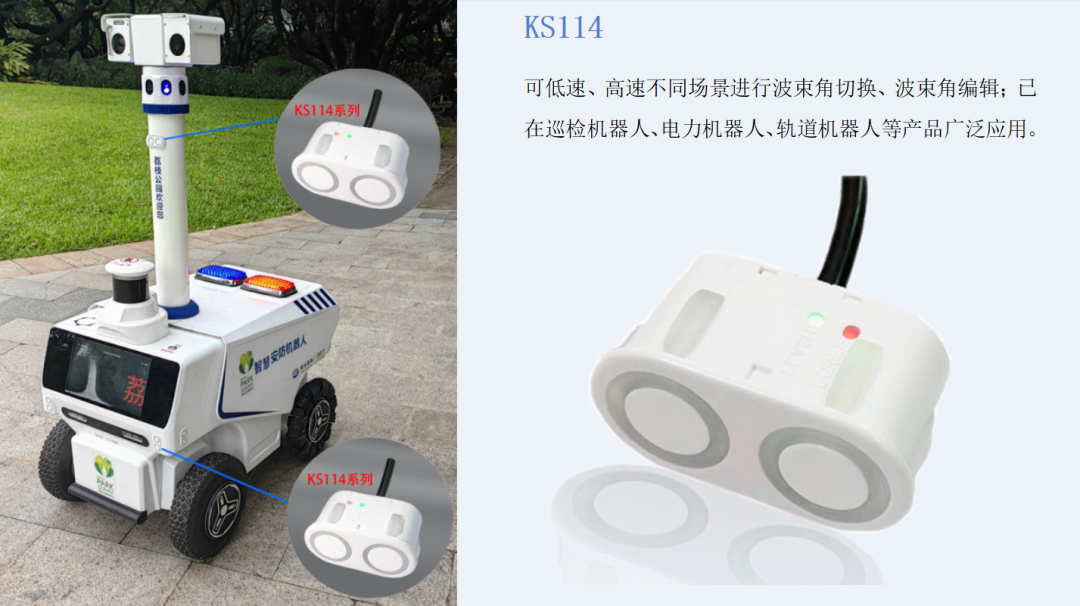 導向公司的超聲波雷達產品KS114,自2019年上市以來,已經廣泛用于巡檢機器人、電力機器人、軌道機器人、清潔機器人等多個領域。該產品經受各種不同惡劣戶外環境的考驗,無論風吹、日曬、雨淋,均保證了運行零故障率,產品復購率極高。