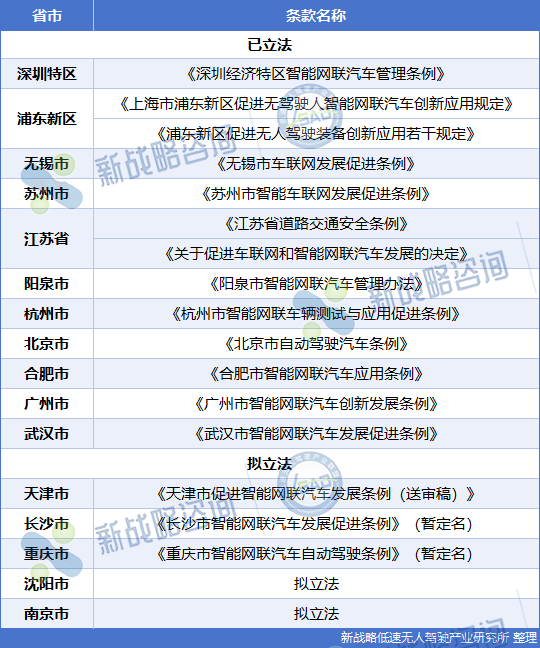 相比德國、日本、新加坡等已完成國家層面自動駕駛制修法的國家,我國在自動駕駛領域的立法相對謹慎,更多的是鼓勵地方性立法先試先行,為自動駕駛立法積累更多實踐經驗;目前我國已有深圳、上海、無錫、蘇州、陽泉、杭州、江蘇等多個省市出臺實施自動駕駛地方法規。