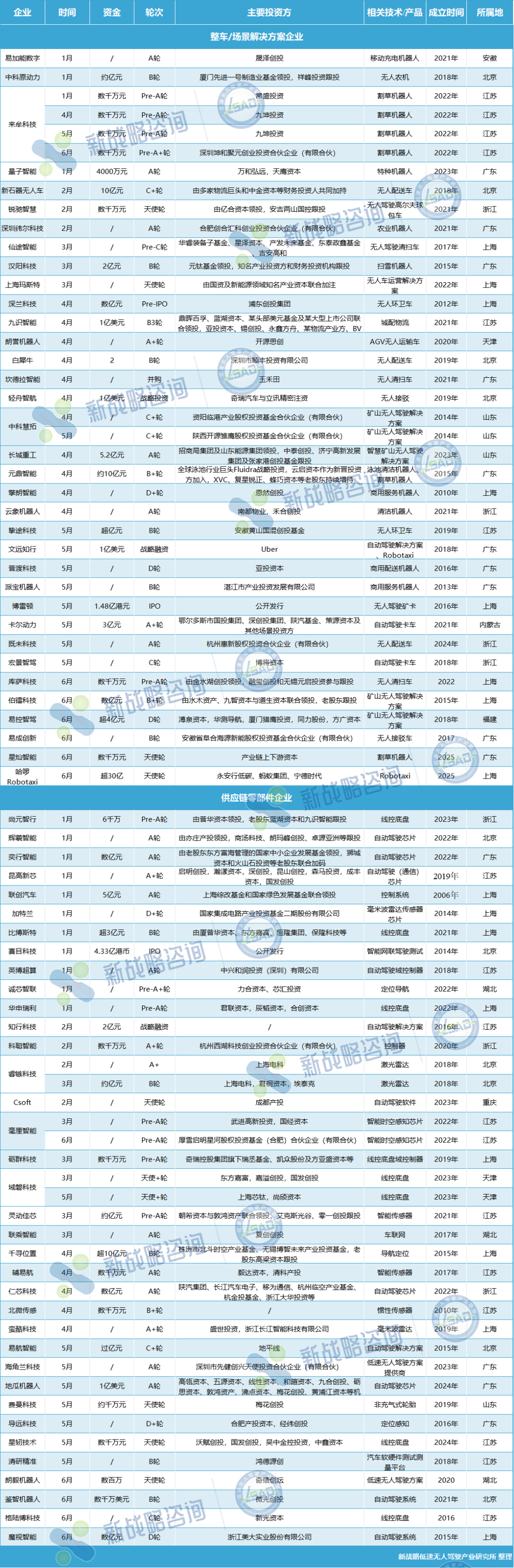 2025年上半年國內無人駕駛領域融資情況(據公開信息整理,未完善之處請指正?。?/span>