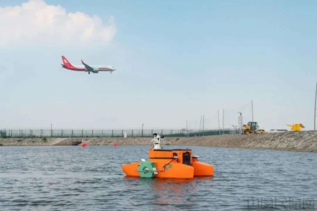 7月7日消息,浦東機場飛行區管理部創新研發的業內首款無人駕駛水體生態綜合治理船投入使用,能夠在機場飛行區排水溝和調節水池執行巡查,開展智能驅鳥。