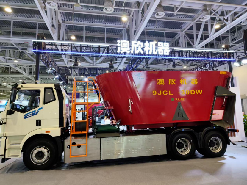 經過三年多技術攻關,澳欣機械已經陸續研發出了四大系列新能源無人駕駛的飼喂車輛(無人車載式制備機、無人撒料車、無人推料車、無人剩料收集車),可以滿足大型牧場各種飼喂模式的設備需求,可以替換牧場目前所有在用的人工駕駛柴油車輛進行飼喂生產作業。