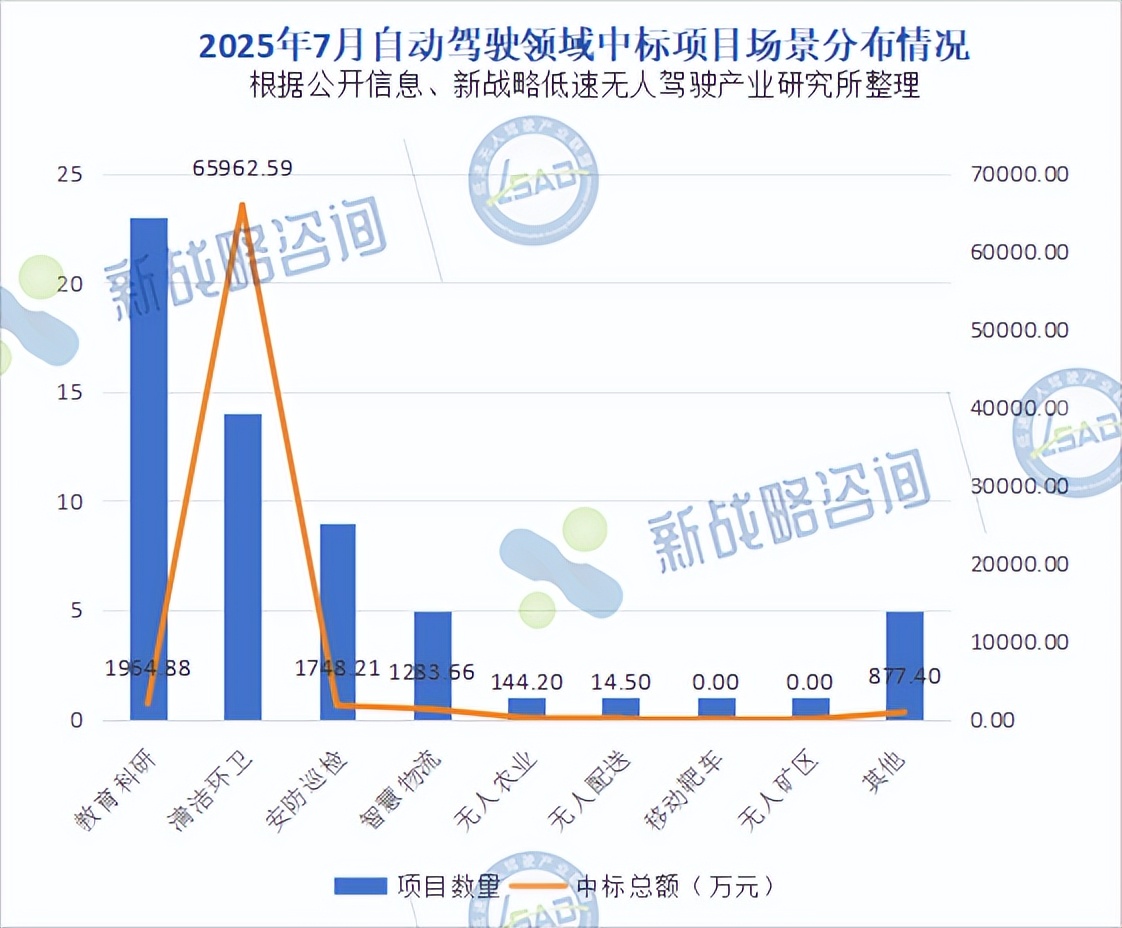 根據公開信息,新戰略低速無人駕駛產業研究所不完全統計,2025年7月,國內自動駕駛領域新增超60項中標結果公告,披露的項目總額近7.2億元(此統計不含乘用車智能駕駛、無人航空器等領域,重點涵蓋低速無人駕駛主要應用場景)。