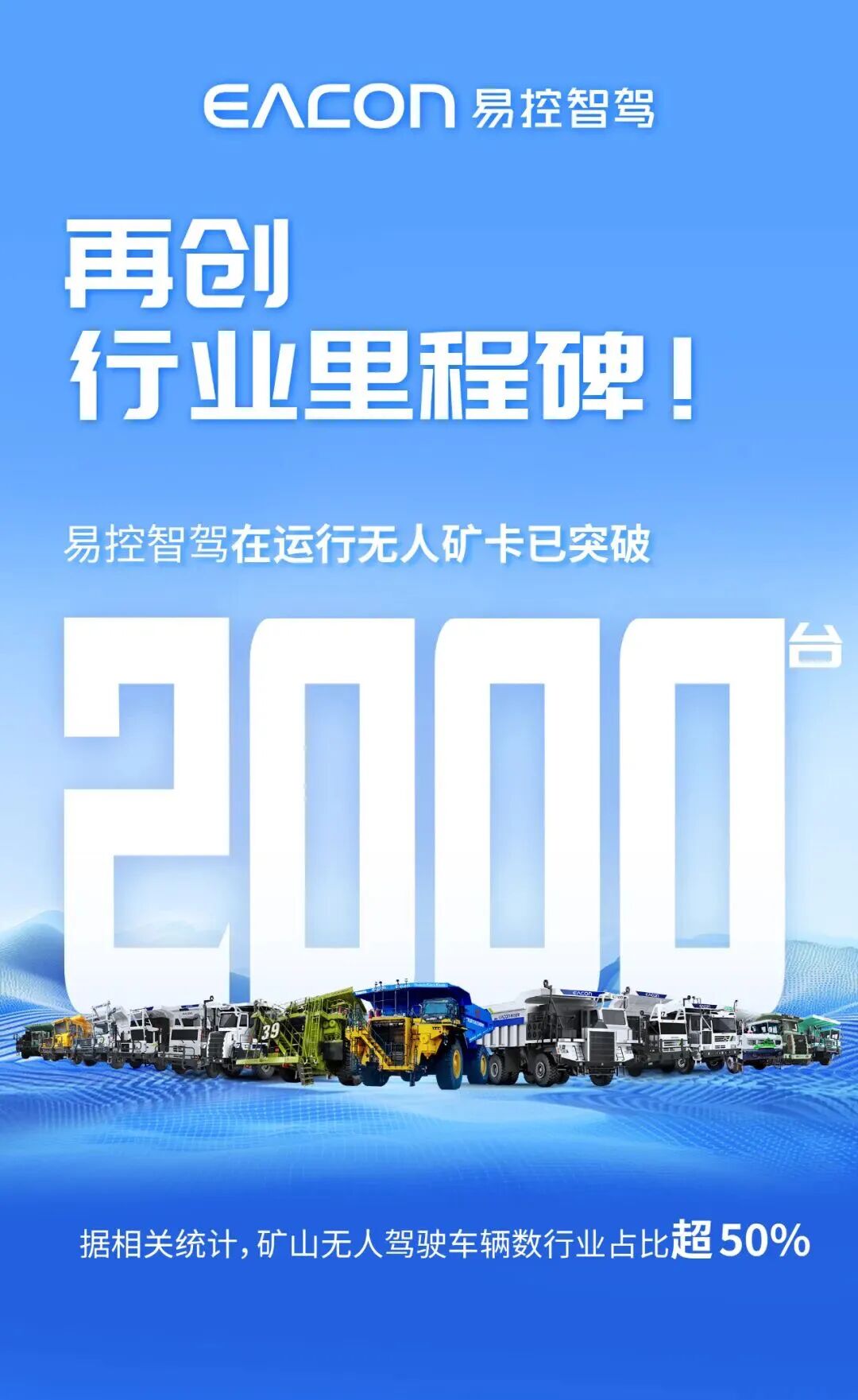 9月19日,易控智駕宣布公司在運行無人礦卡已突破2000臺!據相關統計,礦山無人駕駛車輛數行業占比超50%。