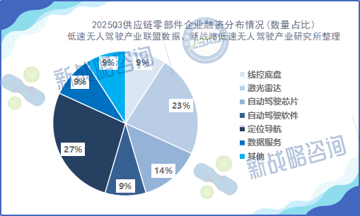 總體來看,2025年第三季度行業融資情況對比2024年同期,在統計的融資事件數量上相對持平,但披露的總融資金額略有增加;其中,在整車端持續落地快趨勢下,零部件端迎來資本補漲。雖然自動駕駛卡車等仍是投資“壓艙石”,但激光雷達、自動駕駛芯片、定位導航等關鍵零部件,正成為決定下一階段行業競爭力的“杠桿點”。