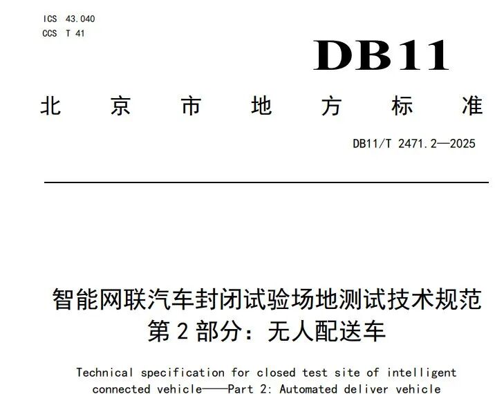 近日,北京市市場監督管理局發布了4項自動駕駛領域地方標準,涉及智能網聯汽車封閉試驗場地測試、車路云一體化路側基礎設施兩大核心領域,包括《智能網聯汽車封閉試驗場地測試技術規范 第1部分:乘用車》《智能網聯汽車封閉試驗場地測試技術規范 第2部分:無人配送車》《車路云一體化路側基礎設施 第6部分:信息安全技術要求》《車路云一體化路側基礎設施 第7部分:運維管理系統應用技術要求》。