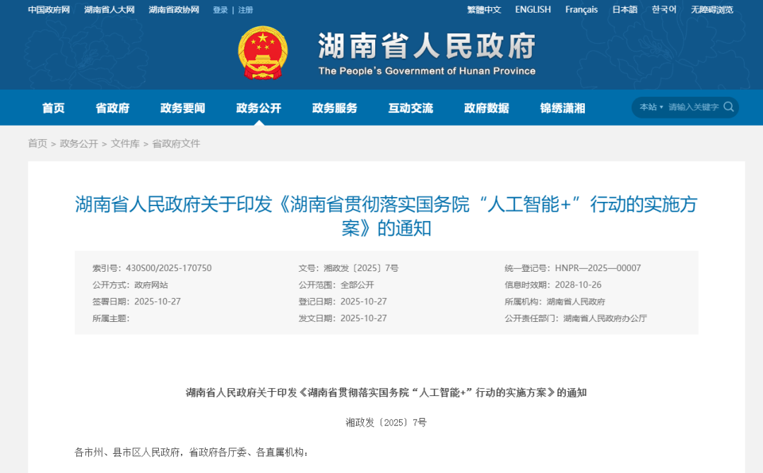 近日,為落實國家“人工智能+”戰略,湖南省人民政府正式印發《湖南省貫徹落實國務院 “人工智能 +” 行動的實施方案》。該方案圍繞 “人工智能 +” 布局五大重點方向,其中多個章節對智慧物流、無人車應用場景作出詳細規劃。(點擊下方“閱讀原文”跳轉官方鏈接)