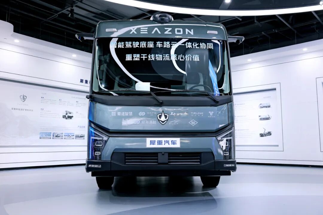 10月29日,主線科技聯合犀重新能源打造的新能源自動駕駛重卡樣車在成都西部氫能產業園正式亮相。