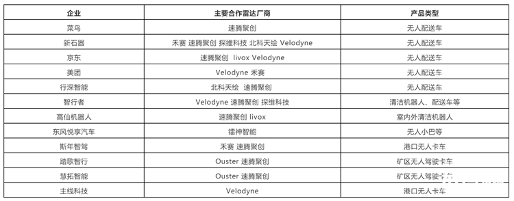 表:國內部分低速無人駕駛產品激光雷達應用情況(本表粗略統計,如有未完善之處,請指正?。?br />